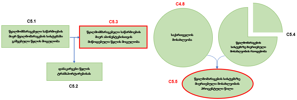 კომპონენტები: წყალმომარაგება, წყალმომარაგების სისტემაზე მიერთებული მოსახლეობის რაოდენობა, წყლის დანაკარგები, საქართველო