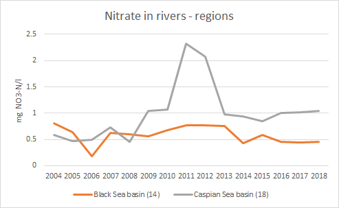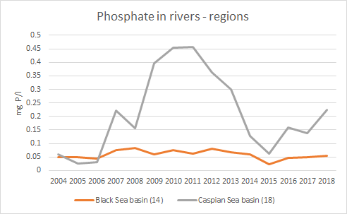2004-2018 წლების განმავლობაში, ნიტრატების და ფოსფატების კონცენტრაცია შედარებით სტაბილური იყო შავი ზღვის აუზში ჩამდინარე მდინარეებში, მაშინ როდესაც კასპიის ზღვის აუზში ჩამდინარე მდინარეებში ცვალებადი, თუმცა ზღვრულად დასაშვებ კონცენტრაციაზე ბევრად ნაკლები იყო.