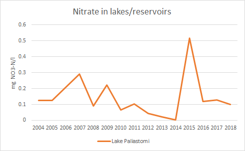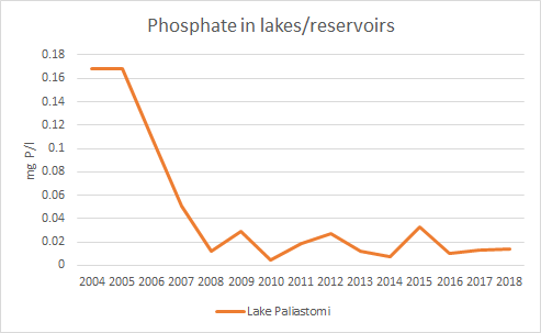 2008 წლიდან მოყოლებული ფოსფატების კონცენტრაცია პალიასტომის ტბაში სტაბილურობას ინარჩუნებდა, მაშინ როდესაც ნიტრატების კონცენტრაცია საკმაოდ ცვალებადი დარჩა.